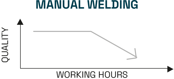 Thanks to the repeatability guaranteed by the robot, the quality of the weld remains constant over time.